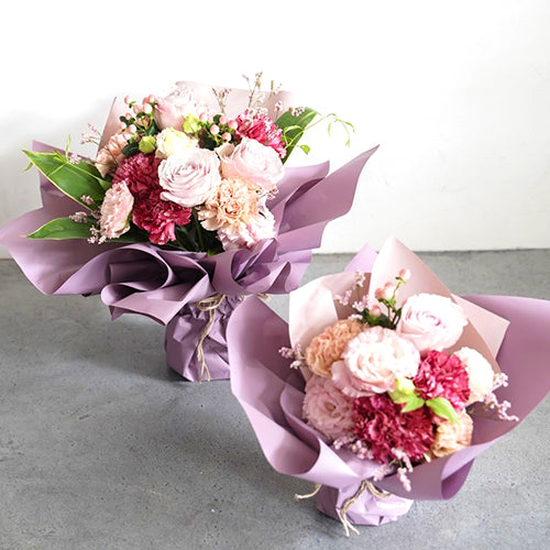 そのまま飾ることができるカーネーションのスタンディングブーケからドライフラワー、一風変わったフラワーケーキまであります。